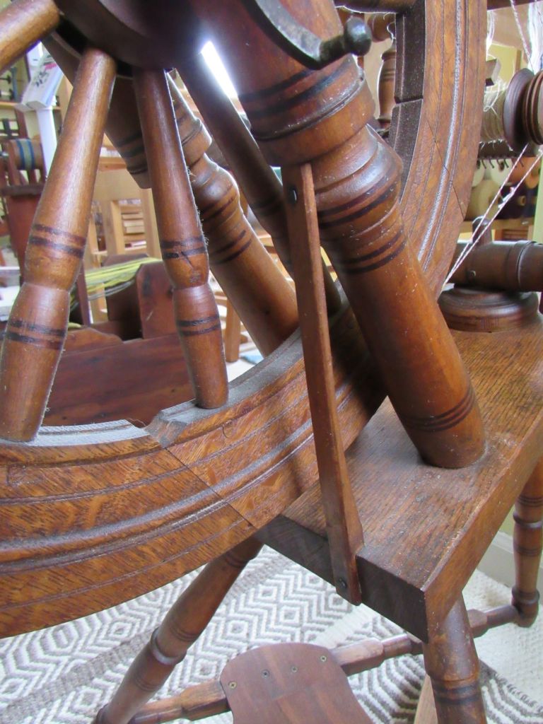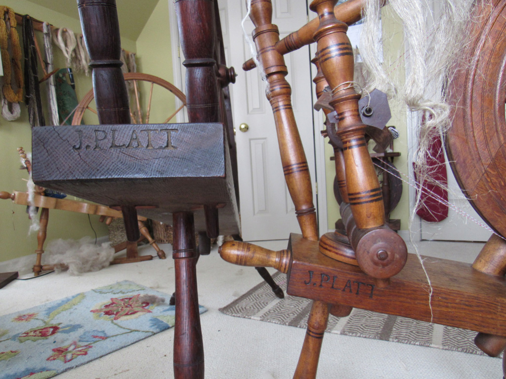 J. Platt, the wheelmaker, remains something of a mystery. Despite extensive research, I still haven’t been able to nail down who he was. His wheels share a number of features with Samuel Sanford, John Sturdevant, and Silas Barnum–wheelmakers from southwestern Connecticut in the late 18th and early 19th centuries, well-known for their double-flyer flax wheels.