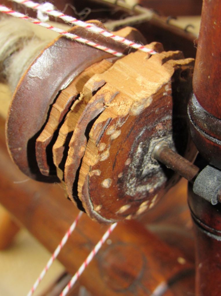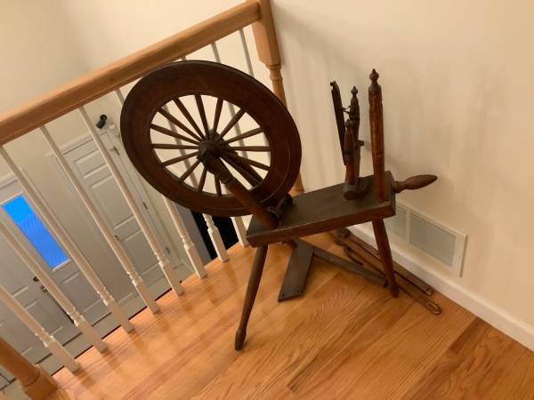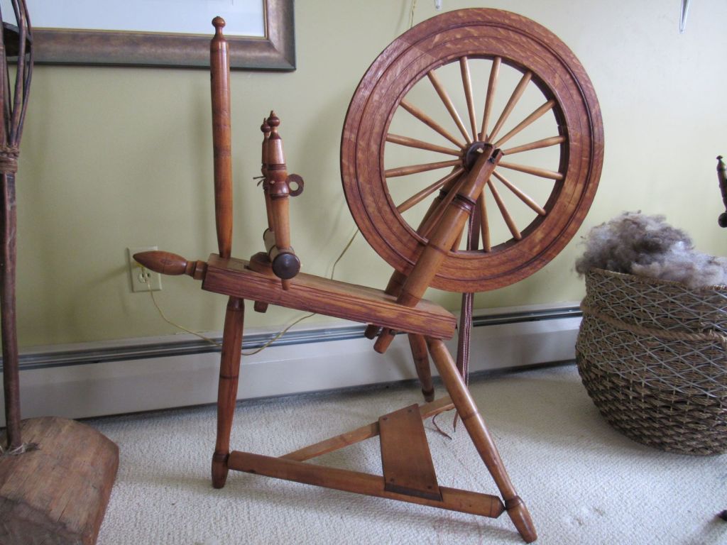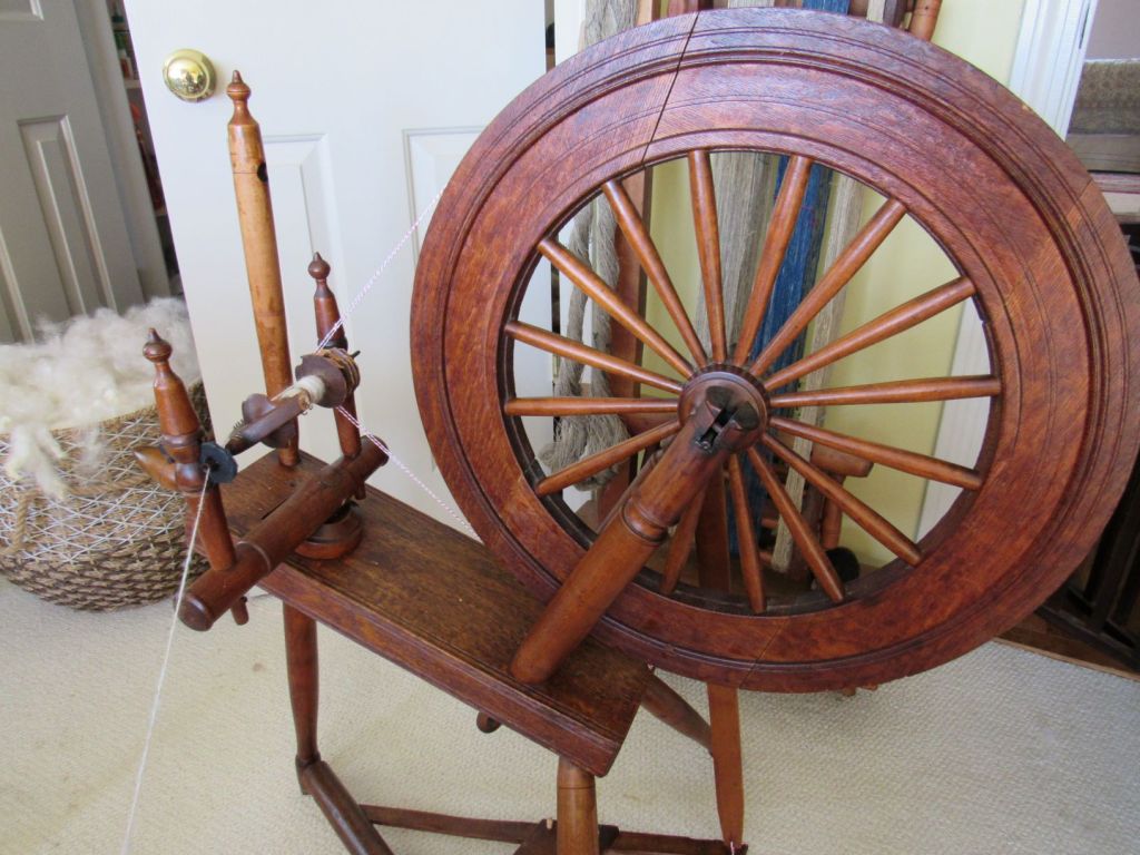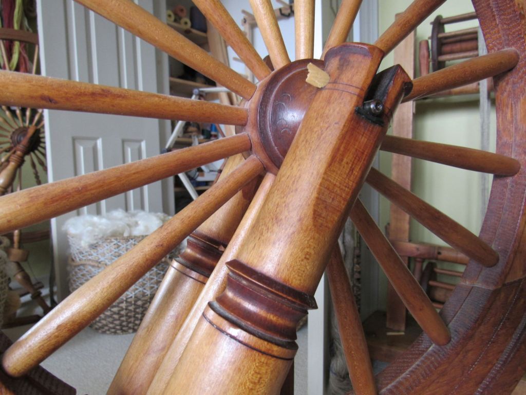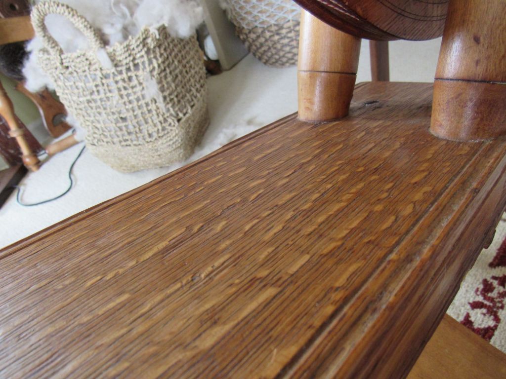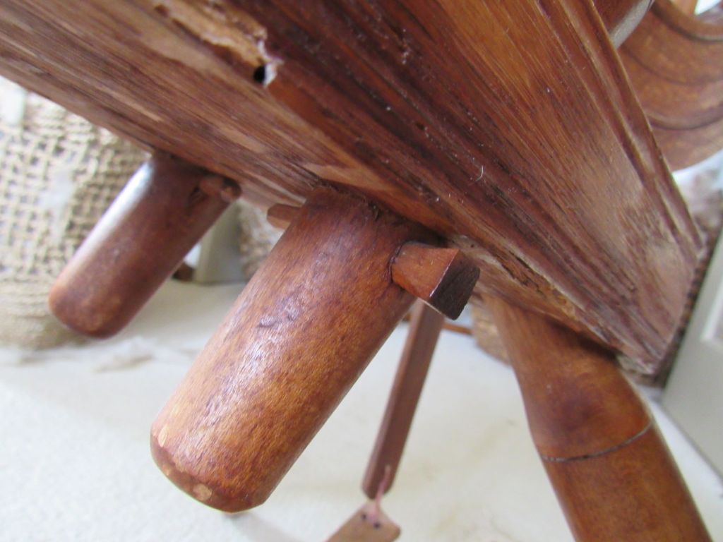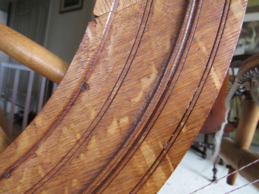 The wood is very blond, which is highly unusual for spinning wheels of the time. It’s just gorgeous and had clearly never seen the inside of a barn or attic, but had been lovingly cared for since the early 1800s. I’d love to know its history. Could it have been similar to the wedding wheels that we see from Europe—a status symbol wheel for a wealthy young bride who never actually had to use it?