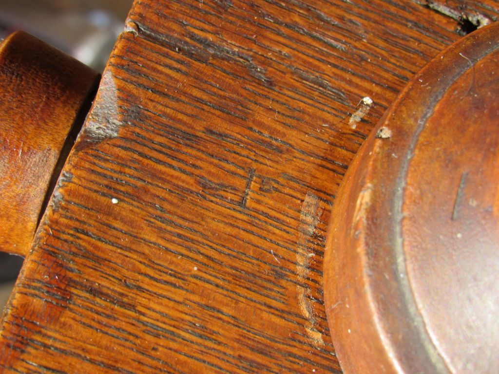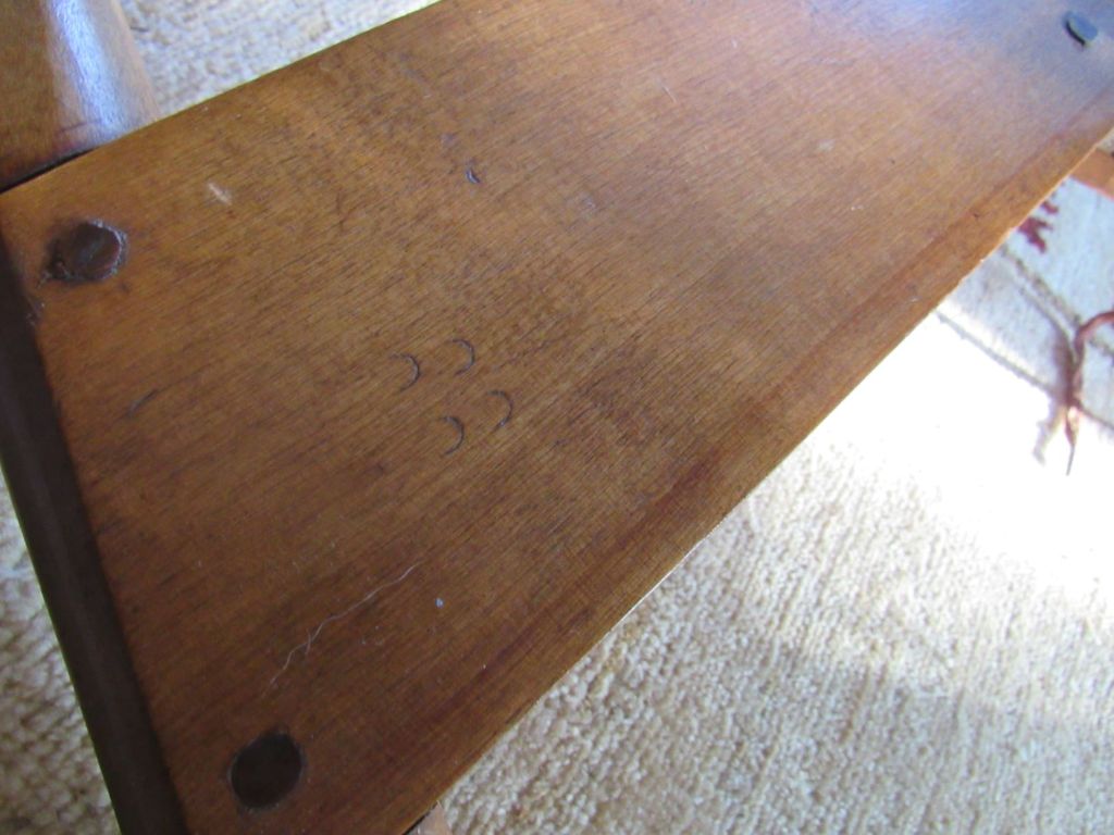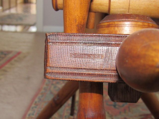 Even though Cheney did not sign his furniture, he did sign his wheels—with a tiny, hard-to-see stamp on the end of the table. Chancey’s seller said there weren’t any maker’s marks on the wheel until I asked her to go back and look again–and showed her a photo of where the mark should be.