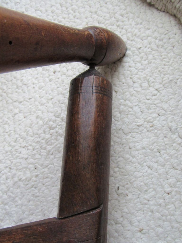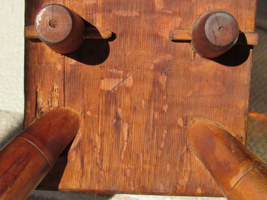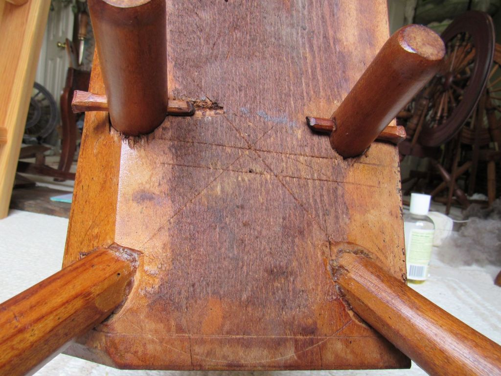 On the other hand, Cheney’s wheels have some intriguing similarities to wheelmakers farther north. The scribing under the table of Cheney’s flax wheels and the chamfering of the leg holes are fairly unusual, but very much like the Morison wheels (in Vermont and upstate New York).