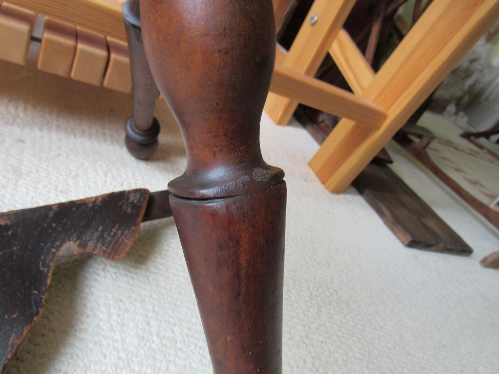 Notice that the Copake wheel has a distaff inserted for the rear missing leg.