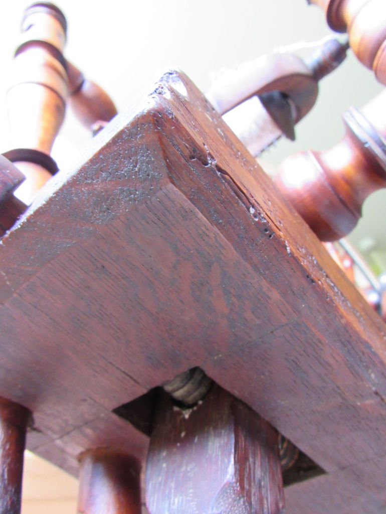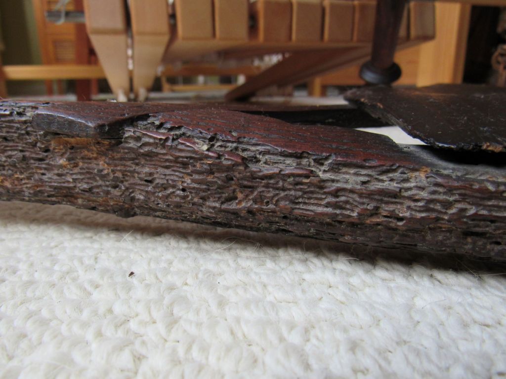 Moreover, the treadle bars had been well-tunneled by beetles, which can turn it into a crumbling wood lace—not ideal for continued use.