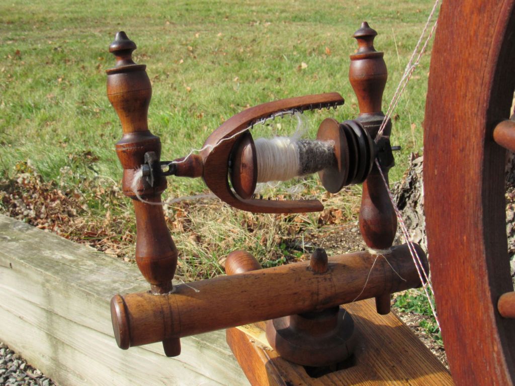 When we retired, I had not done any spinning in decades and had no intention of taking it up again.  Until, one afternoon, I spotted Phoebe in an antique store in Union, Maine.  According to the store owner, she had belonged to an elderly woman in the neighboring town of Appleton.  The wheel had all her necessary working parts but had obviously been stored in a barn or attic for many years.