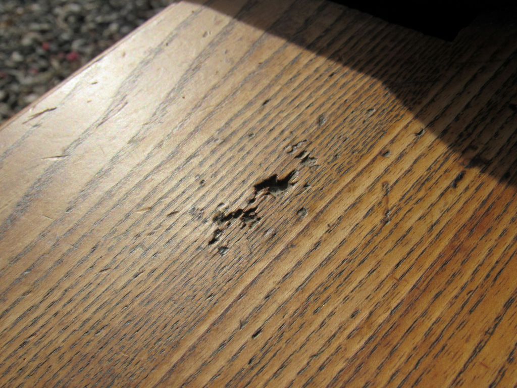 There are crossed scribe marks under the table for positioning the legs,