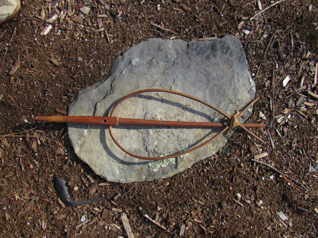 The table has gouges in the middle, which, as mentioned in an earlier post, are speculated to be from a knife (or fork) used to guide or separate the drive band at the cross, perhaps for plying.