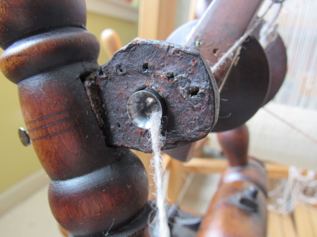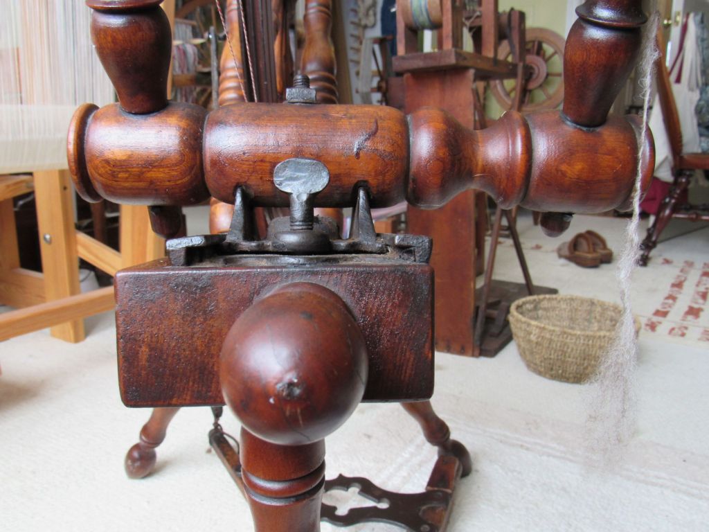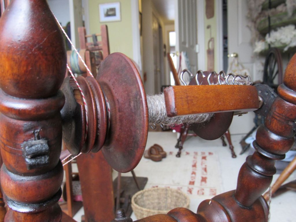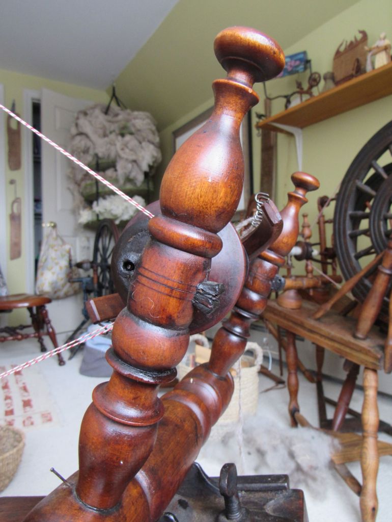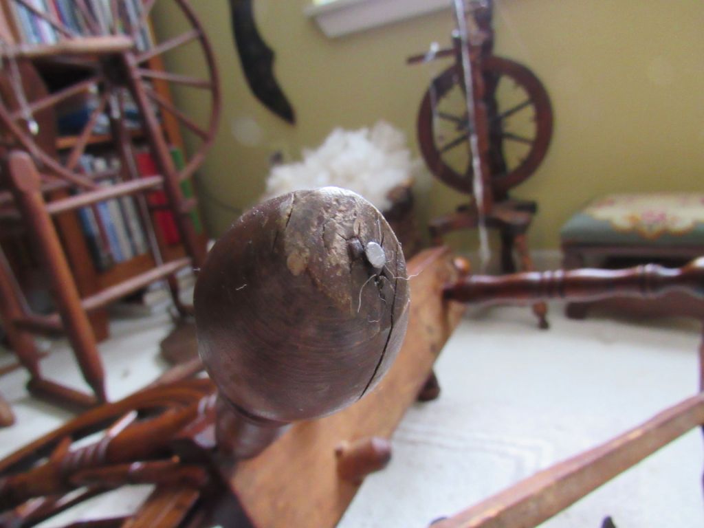 It was put up for auction after the museum closed, when I purchased it and brought it home. There were two Cummer Quebec wheels up for auction that night and I was intending to bid on the other one. But when my foot met the treadle on this one, to see if the wheel turned true, I was immediately drawn to it. It is funny how some wheels don’t speak to me at all and others suck me right in. This wheel is a wonderful spinner and I am hoping to pass her on to a friend who has been looking for a CPW and will give her a good home.