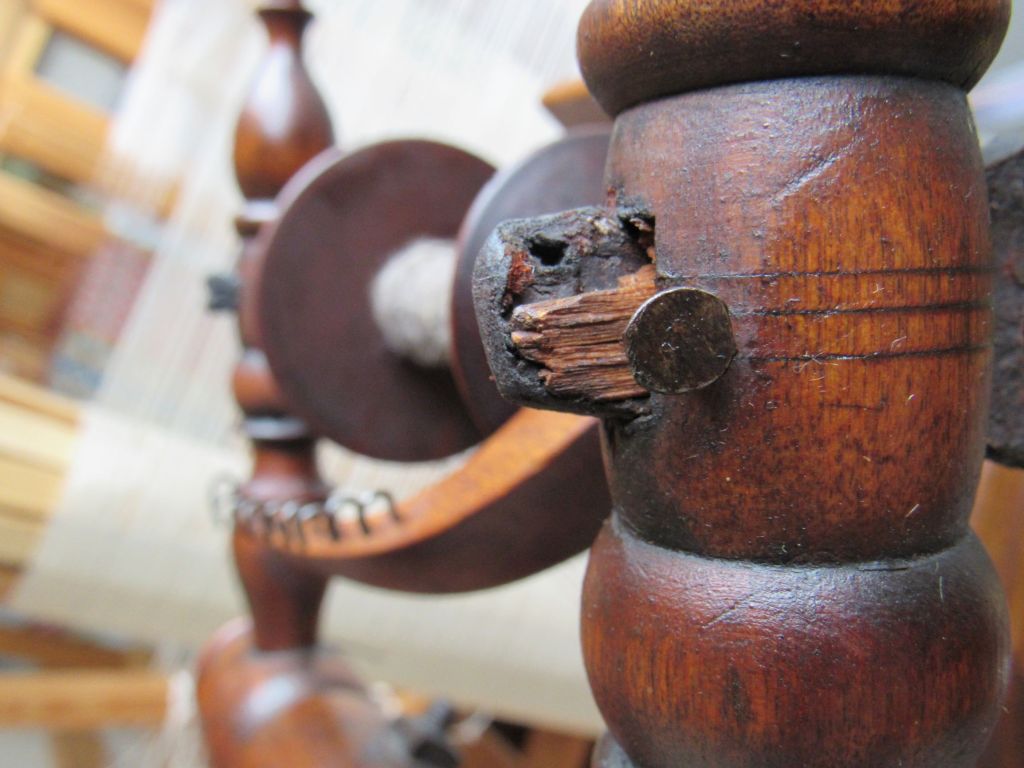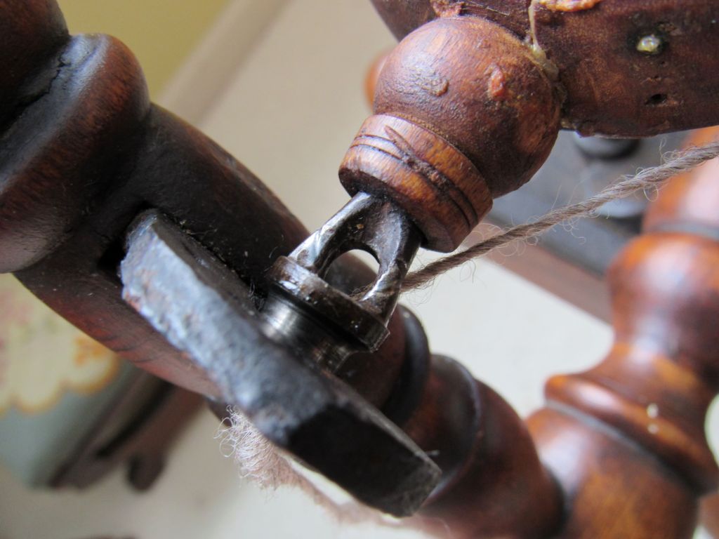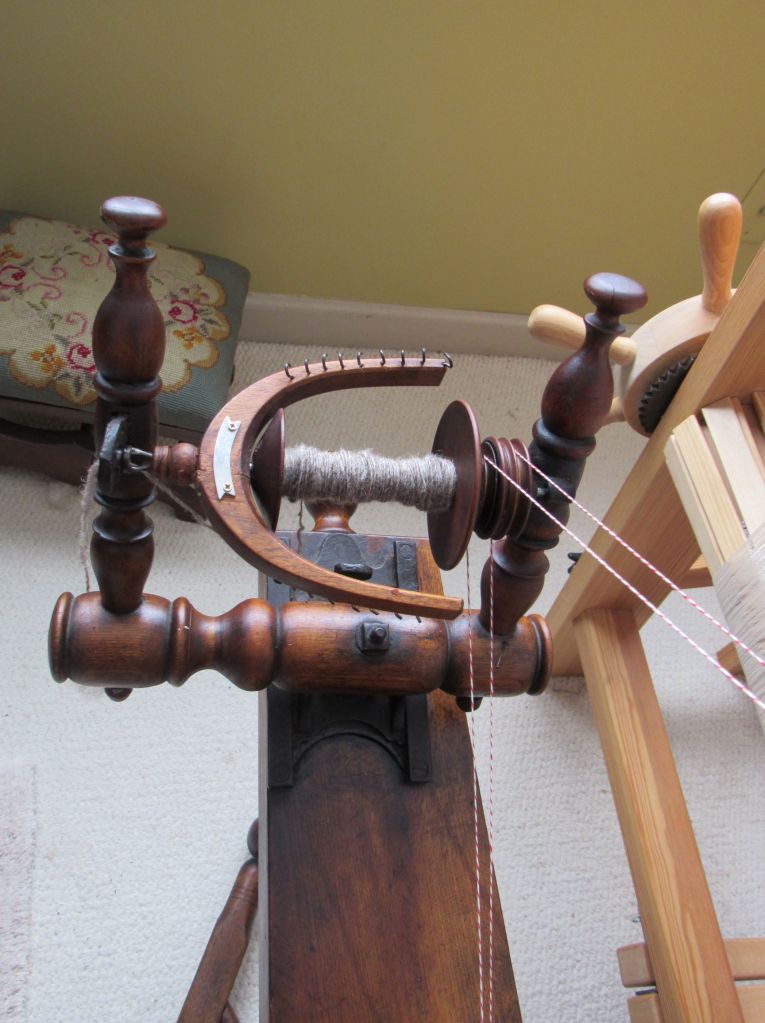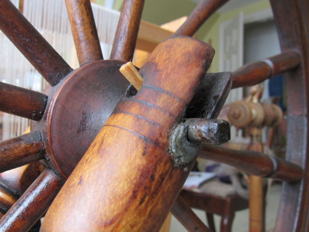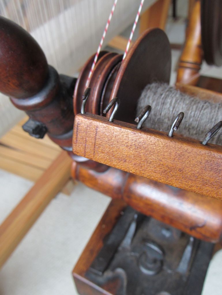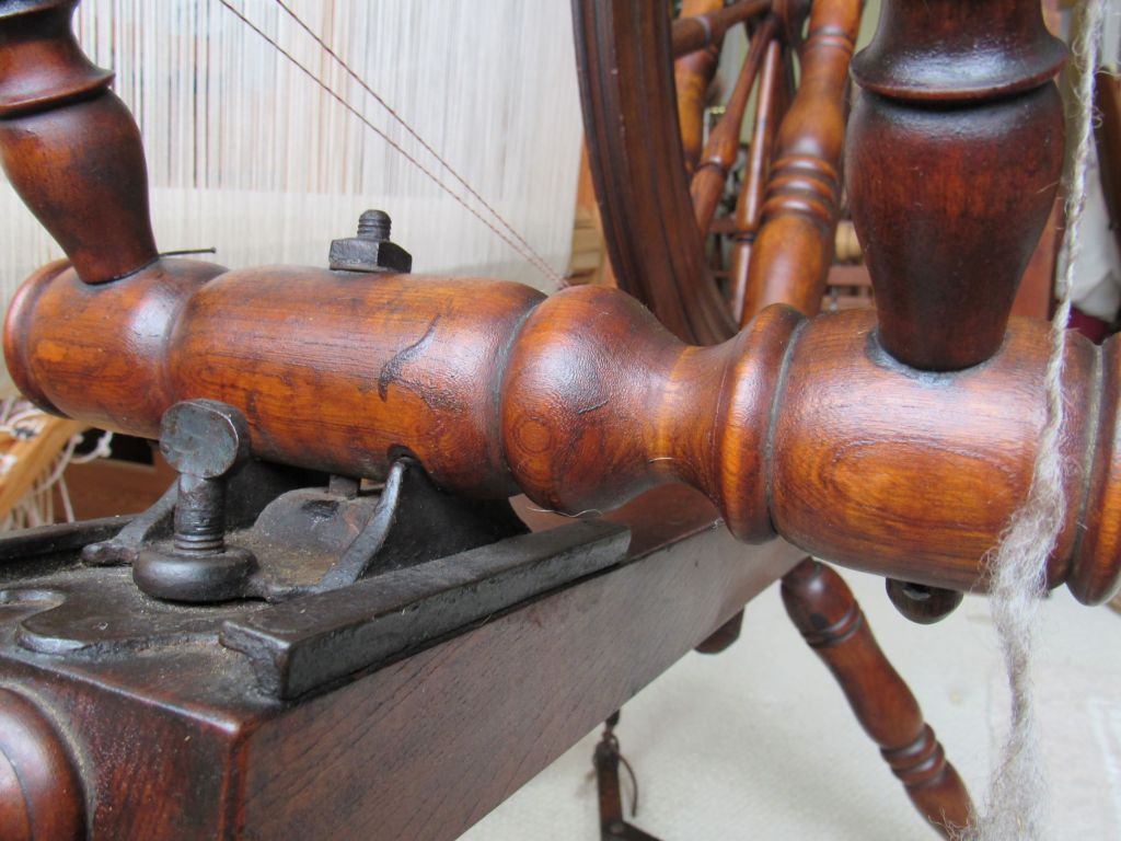 It was put up for auction after the museum closed, when I purchased it and brought it home. There were two Cummer Quebec wheels up for auction that night and I was intending to bid on the other one. But when my foot met the treadle on this one, to see if the wheel turned true, I was immediately drawn to it. It is funny how some wheels don’t speak to me at all and others suck me right in. This wheel is a wonderful spinner and I am hoping to pass her on to a friend who has been looking for a CPW and will give her a good home.