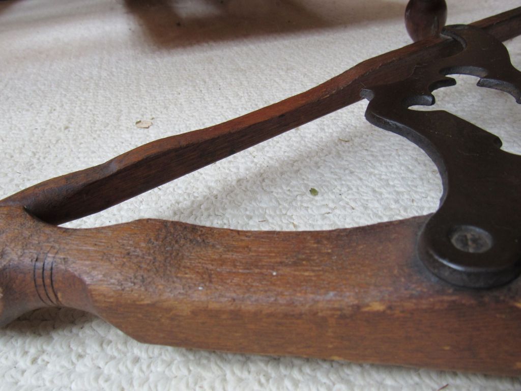 So, I am inclined to think it is original, but it is hard to say. Original or not, it carries a mark of the maker, whoever he may be. There is a saw mark on the rim where it looks as if a cut was started at the wrong angle but then used with mistake intact.