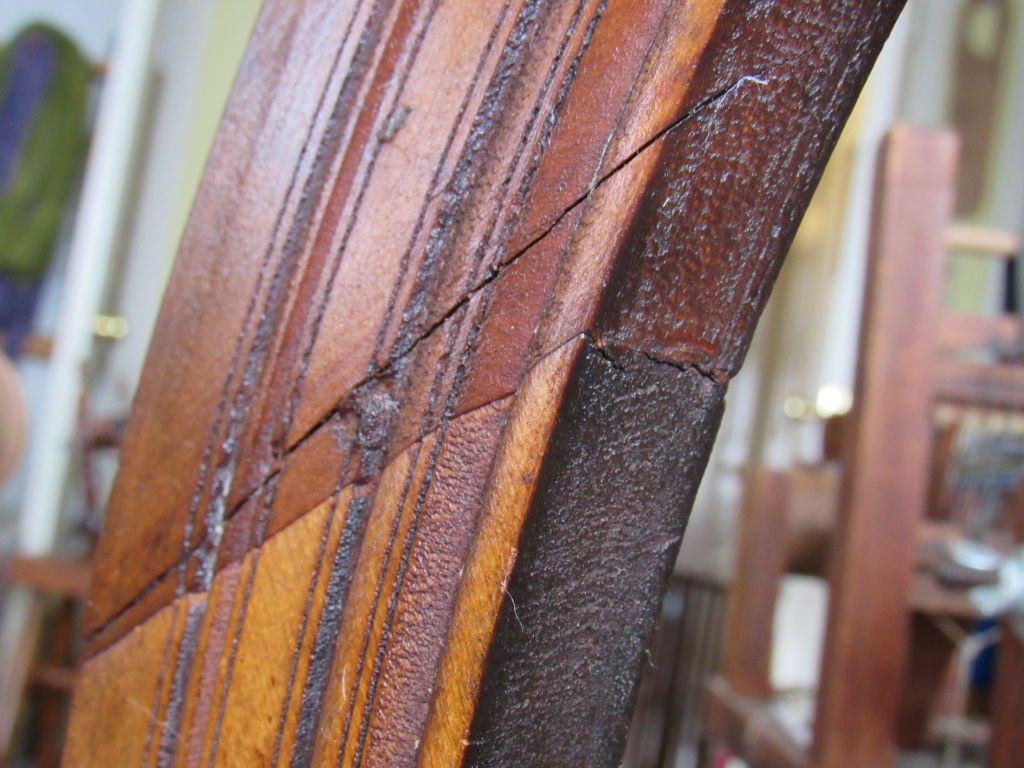 The treadle bars also show lots of wear, indicating that the user probably used both feet to treadle.