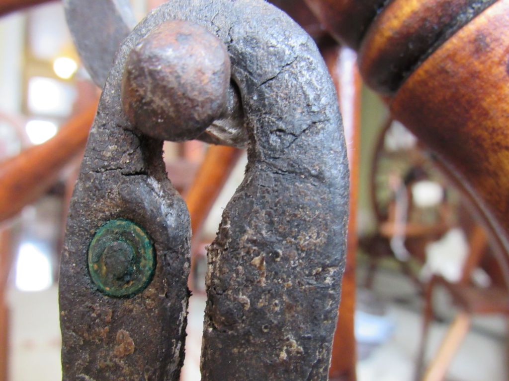 The flyer was broken and glued and repaired (I since added some metal plates, as back up to the glue) but the arms, interestingly, do not have any wear lines on them and the hooks are in great shape.