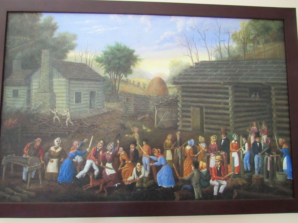 Before mechanization, the biggest danger in scutching may have been over-imbibing at a community scutching bee, as depicted in this wonderful 1885 painting by Linton Park.